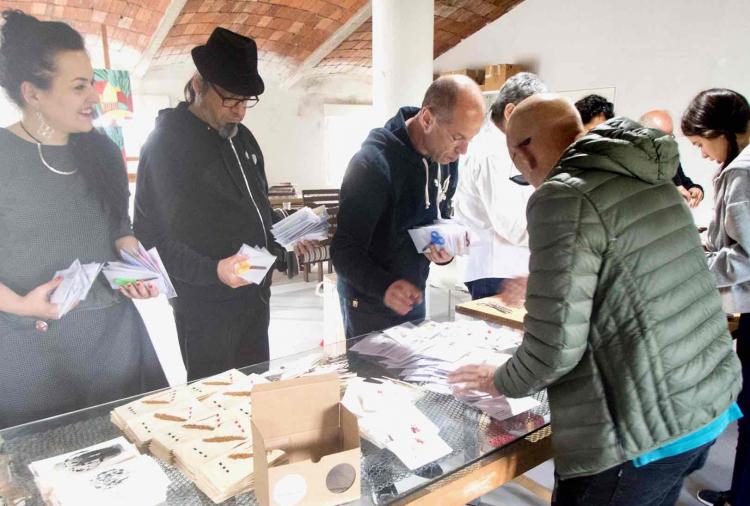 Una edición compartida; los y las artistas, a lo largo de los tres días de encuentro, unieron sus fuerzas para crear 100 ejemplares de su obra individual— obra gráfica y/o texto original. Cada una de las obras, es una página de la edición, cuyo formato es una caja de cartón con ventana de la se han publicado 100 ejemplares.